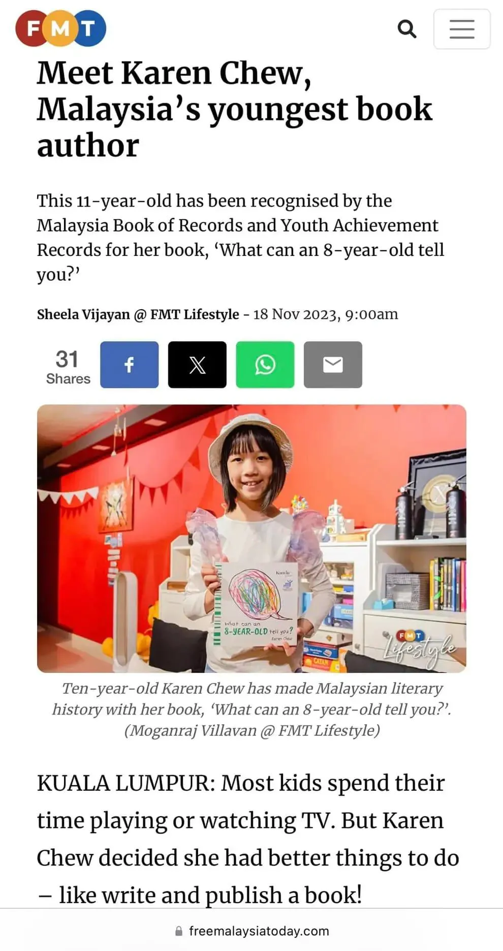 Karen, age 9, attending Marcus Teoh’s book writing webinar in January 2022 — she later became Malaysia’s Youngest Author in November 2023