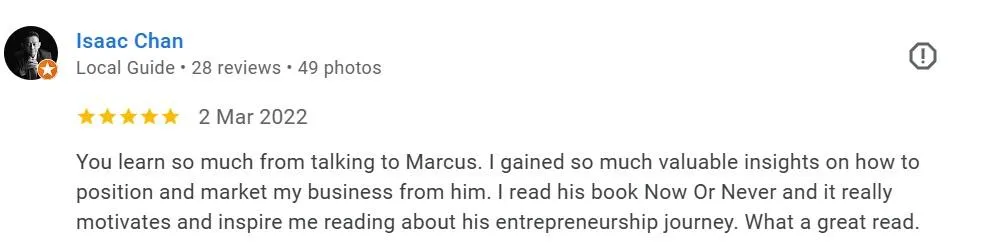 1: Proven System from a Bestselling Author Featured Beside Global Names. Marcus' book Now or Never ranked in MPH's Top 10 Business Books — listed alongside Robert Kiyosaki, Richard Branson, and Tony Robbins. This isn't theory — it's a system built from real experience that produced real results. Marcus' book has gotten him to speak in Singapore, Saudi Arabia and The United States.